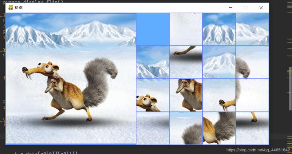 响应按键是,picture和data列表都要同步改变,data用来判断是否拼图完成。