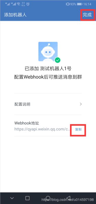 7.4、创建好后,复制Webhook地址后,点完成
