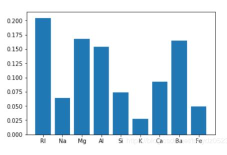 可见Rl、Mg、Al、Ba的重要性比较高,一般情况下变量重要性得分接近80%,基本上已经可以解释大部分的特征变化。