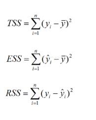 建立模型后,整体变量的总变动程度(TSS)可以划分为两部分:模型模拟的变动程度(ESS)和未知的变动程度(RSS)