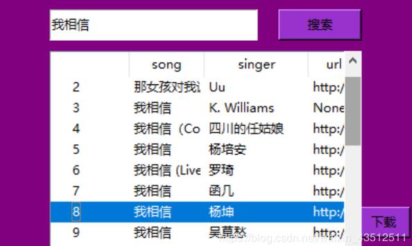 SearchWindows ------搜索栏(搜索歌曲默认显示20条,可下载)