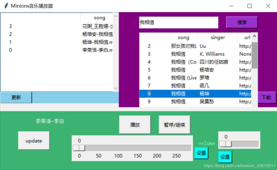 本文实例为大家分享了tkinter+pygame+spider实现音乐播放器,供大家参考,具体内容如下