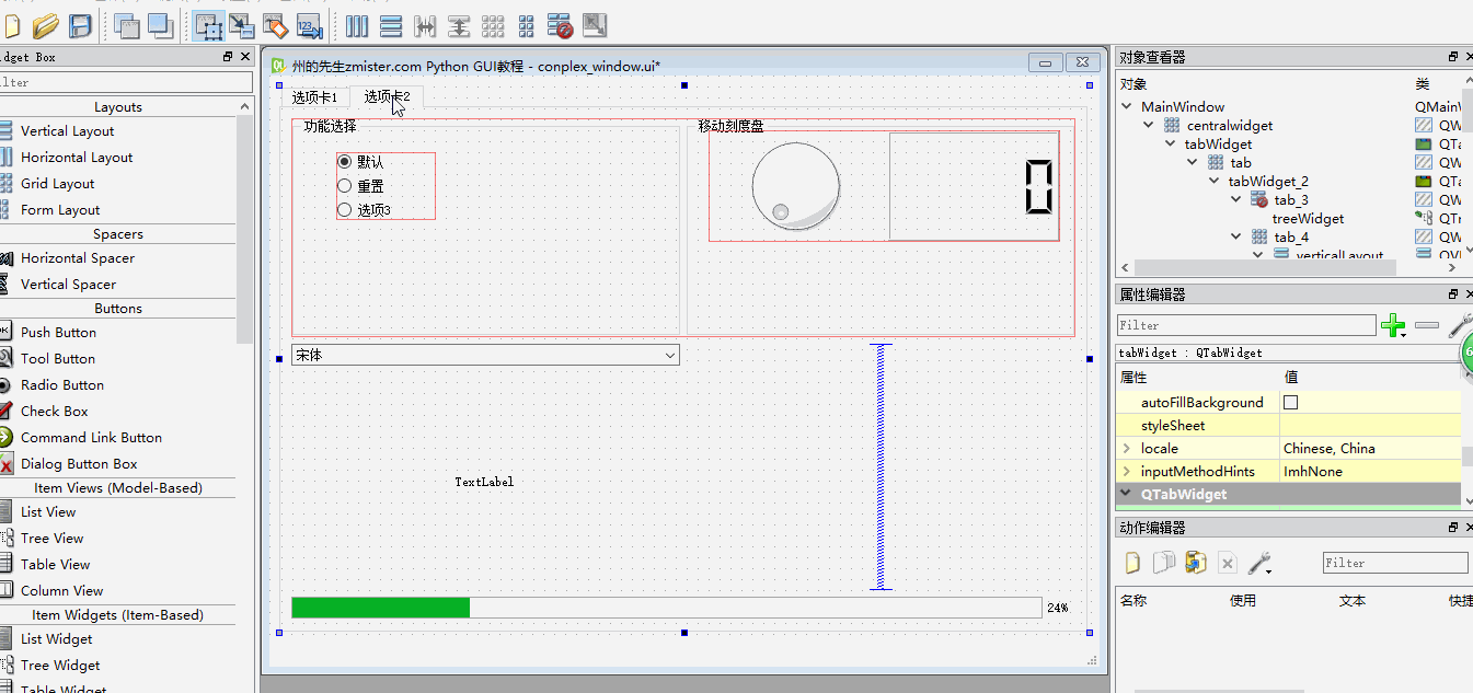 使用Qt设计师或者使用API都可以实现。我们先使用Qt设计师将GUI的图形设计出来,在之前的GUI的基础上,我们新建一个选项卡。