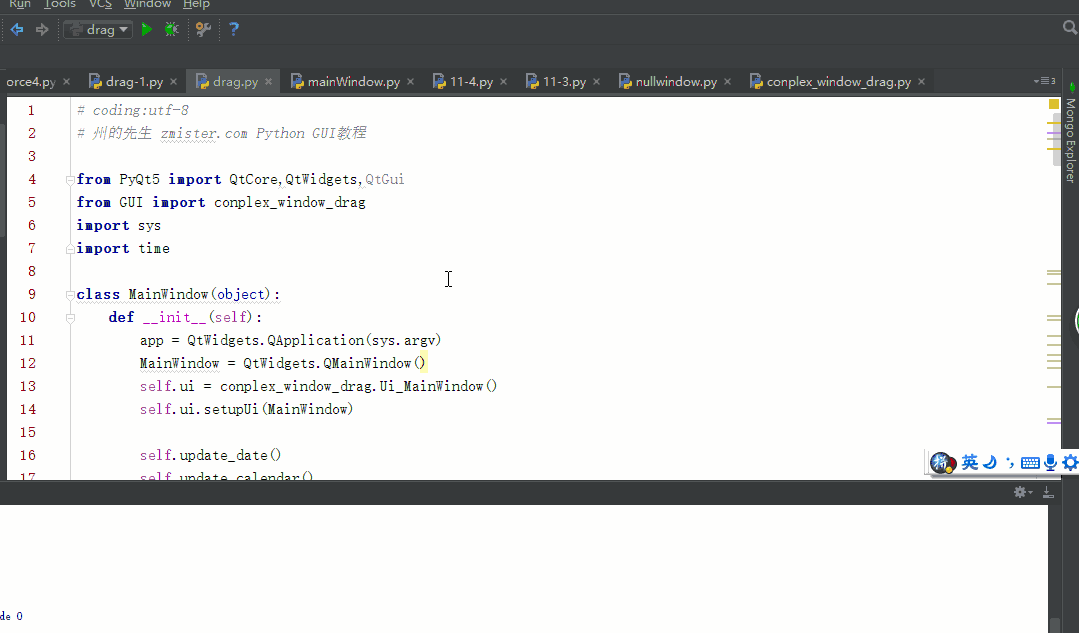 然后,新建一个Python文嘉drag.py,在文件中引入刚刚转换好的Python文件: