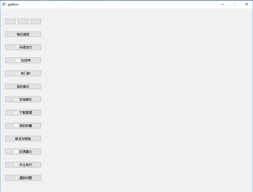 左侧的最顶端是三个窗口控制按钮,我们需要将其设置为小圆点的形式。首先,我们使用QPushButton()的setFixedSize()方法,设置按钮的大小: