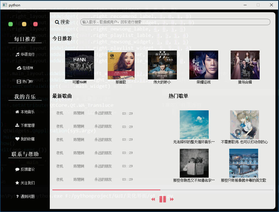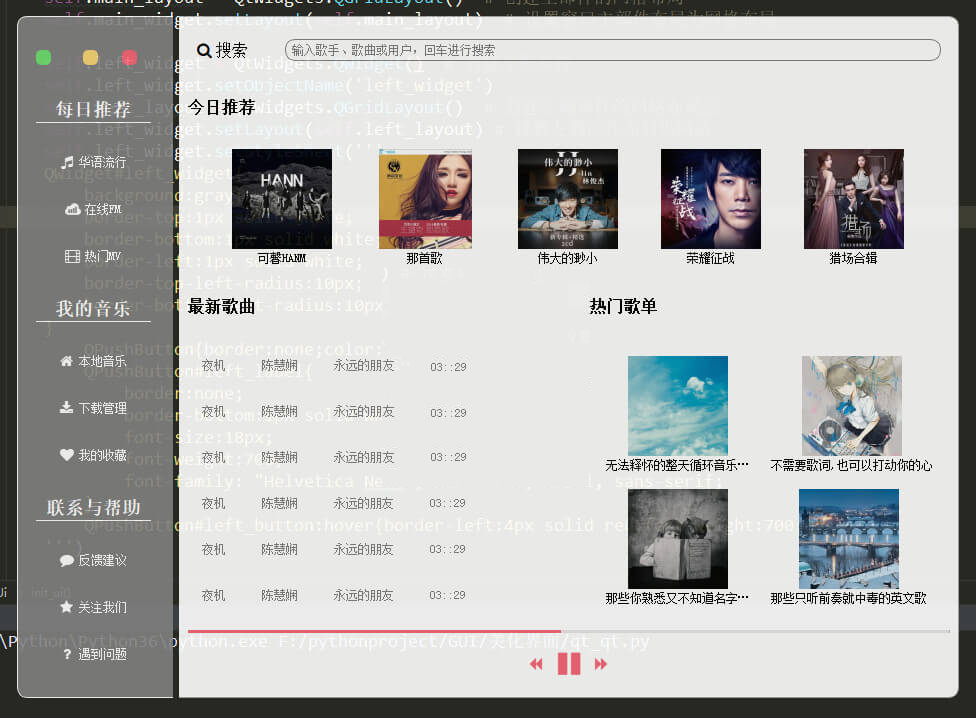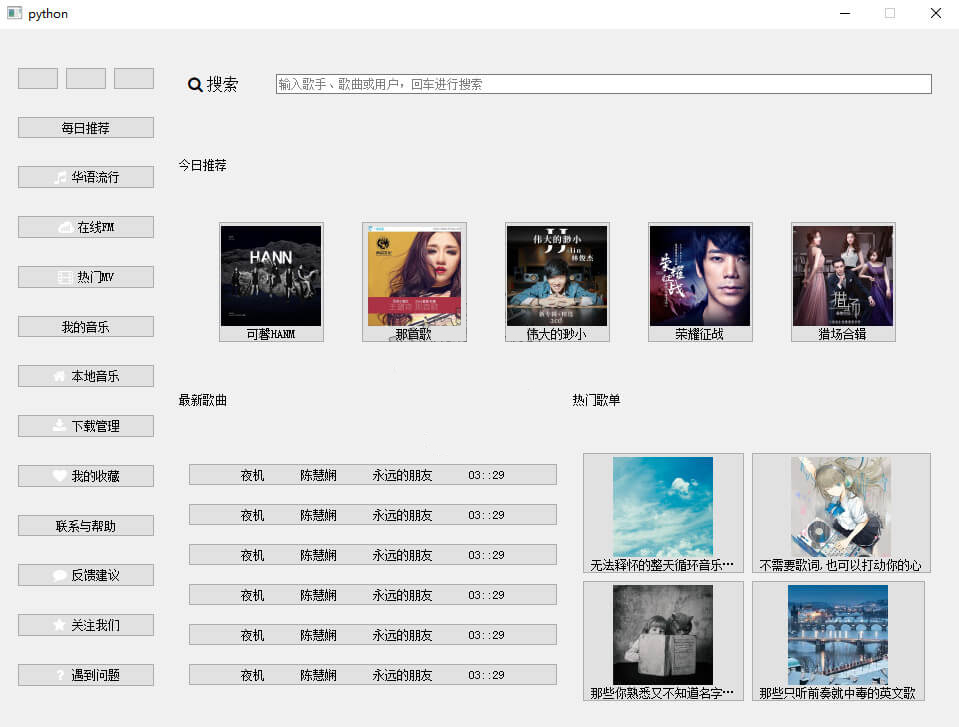 因为推荐模块和歌单模块中使用的都是QToolButton()部件,所以其样式也类似: