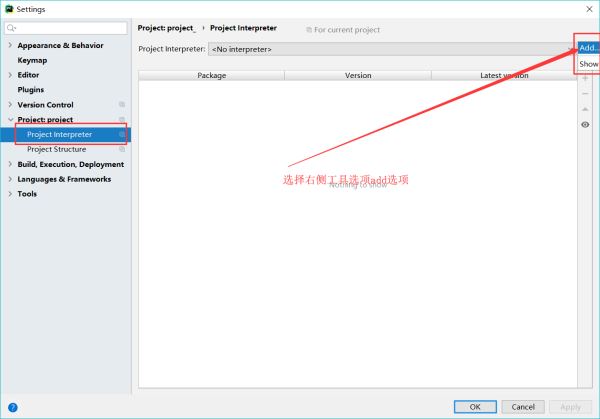 方法:File-->Settings-->Project:unititled-->Project Interpreter