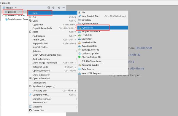 1.创建Python File 方法: 选择工程名称,New-->python file ,输入名称即可