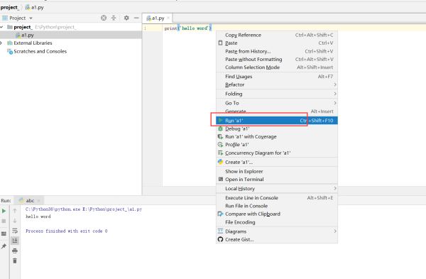 2.编写并运行代码,右击选择“run”编译运行