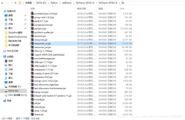 Step1:将汉化包”resources_cn.jar”放置到安装目录的lib下,重启PyCharm