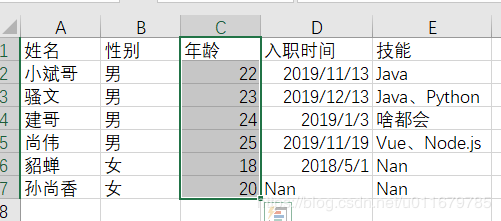 至于时间为什么是43812.0,这个是天数,可以转换成日期格式,后边我会详细写用法~