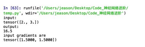 如果前面的例子理解了,那么这个也很好理解,backward输入的参数k是一个2x1的矩阵,2代表的就是样本数量,就是在前面的基础上,再对每个样本进行加权求和。结果是: