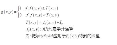当背景照度不均匀时,全局阈值方法可能失效,此时,用局域变化的阈值函数T(x,y)分割图像f(x,y):
