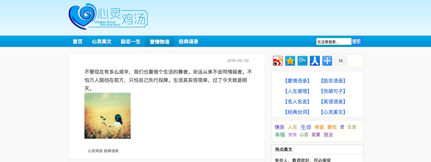 # 获取心灵鸡汤中的最新内容,可以参考其他爬虫随便查看怎么爬虫
