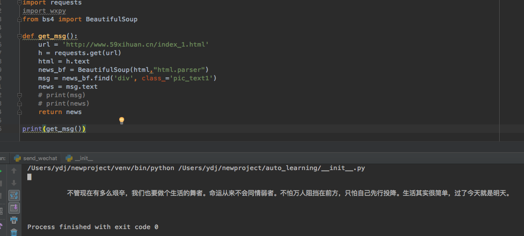 思路整理:1、进入心灵鸡汤网页,使用python获取心灵鸡汤内容