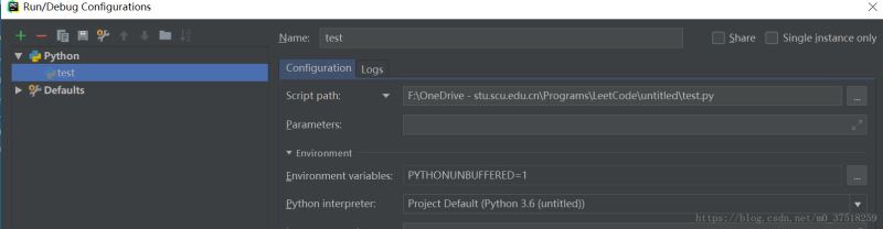 点击我们要运行的.py文件就可以运行了,我们再看原来的配置信息,和我们手动配置的一样: