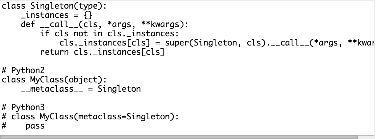小结Python 的模块是天然的单例模式,这在大部分情况下应该是够用的,当然,我们也可以使用装饰器、元类等方法