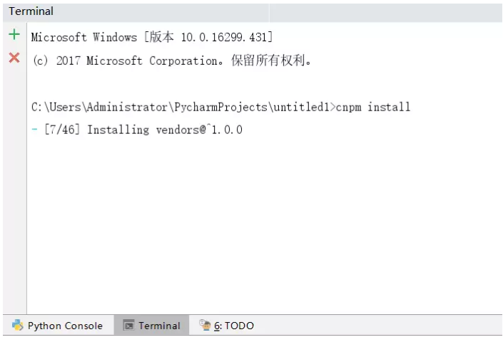 在其中输入cnpm install 回车等待安装