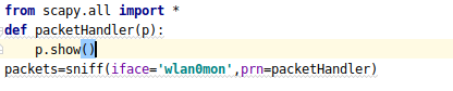 iface是开启监听模式后的网卡名称,p.show()会显示接收的无线信号,如下图所示: