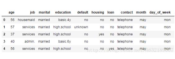 bank.head() #查看前5行