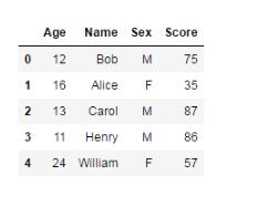 score = {'Name':['Bob','Alice','Carol','Henry','William'],