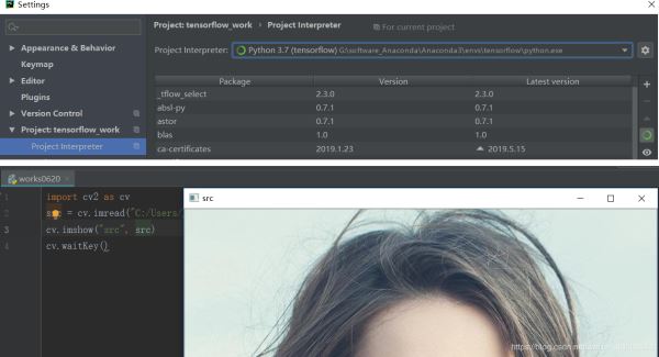 3)在Pycharm相应的解释器下就可以使用opencv了