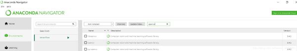 用Anaconda包管理器里面的库安装opencv,但是这个方法一个弊端就是安装的opencv最高版本只是3.4版本