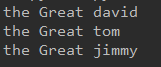 def make_great(original): for magician in original: magician = "the Great " + magician magicians = ["david", "tom", "jimmy"] make_great(magicians) show_magicians(magicians)