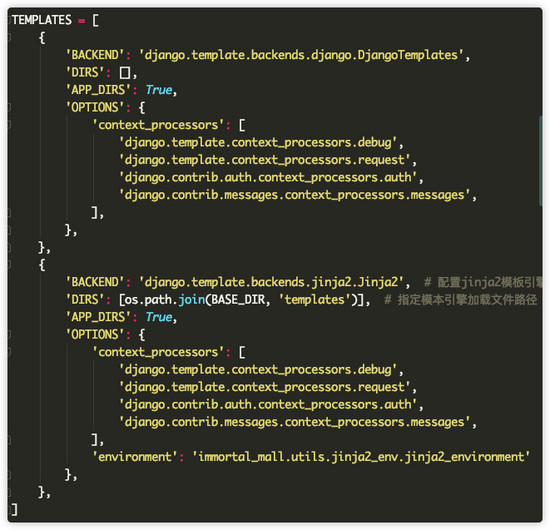 这时是因为注释掉了django默认的模板配置,需要去掉注释,只添加新的版本引起即可。