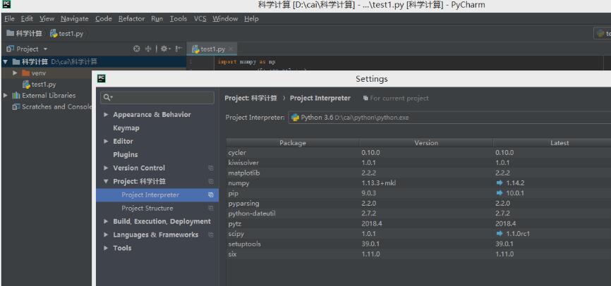 补充知识:使用pycharm编辑器编写python出现找不到numpy等包的问题
