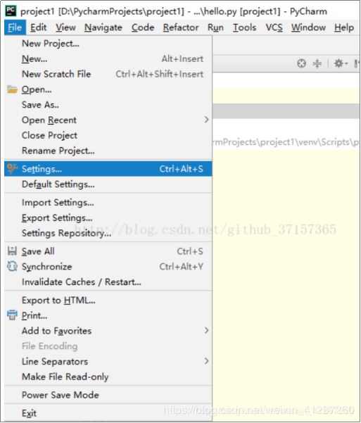 1.点击菜单栏File,选择Settings。