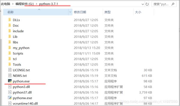 1.注:我的python安装路径为:G:\python-3.7.1,而“python.exe”(python解释器)文件也在该目录下: