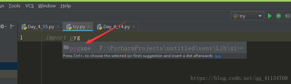 我们发现提示中竟然有pygame了,ok 其他库一样可以这样导入哦。
