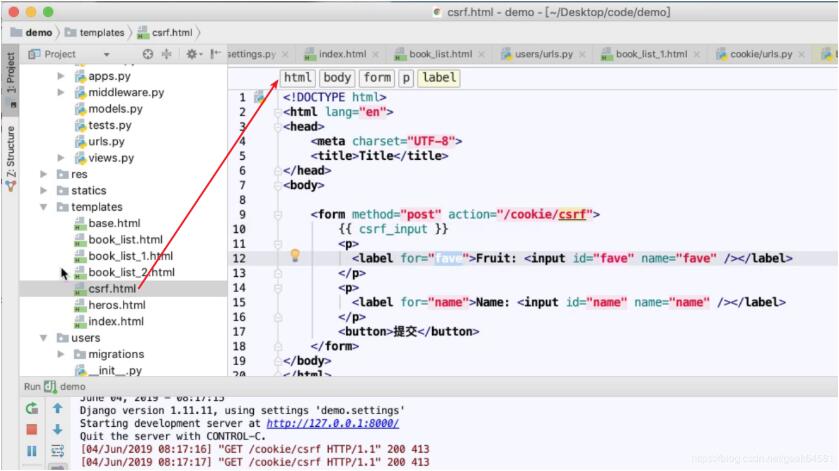 2. 在 Form 表单中添加一个隐藏的的字段,值也是 csrf_token
