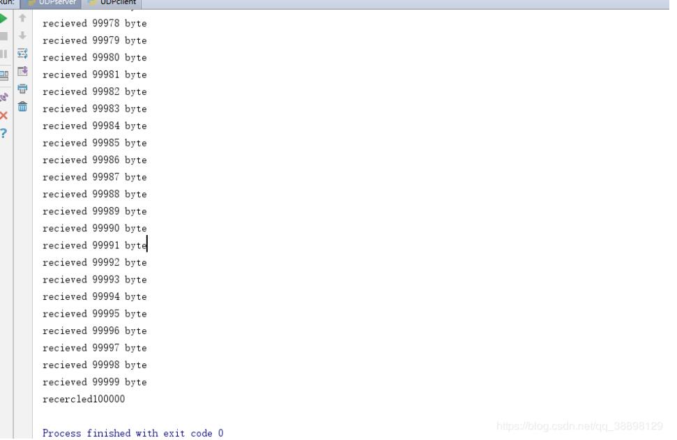 此次试验为100000Byte大小的文件,运行后查看服务器端信息: