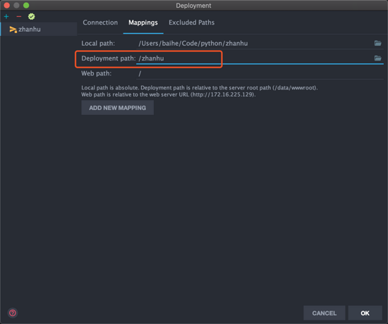 1.Mapping 选项设置,主要设置本地项目目录与远程目录的映射