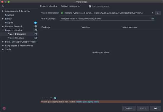 配置使用远程服务器 Python 解释器