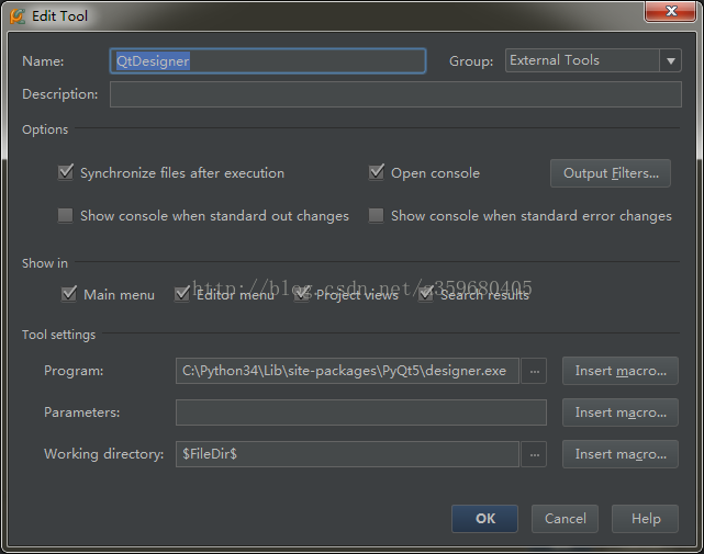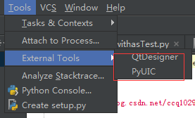 1)打开PyCharm,执行快捷键ctrl+alt+s打开设置界面,输入tool,点开external tools,配置qtdesigner。