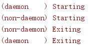这个代码的输出中不包含守护线程的“Exiting“消息,因为在从sleep()调用唤醒守护线程之前,所有非守护线程(包括主线程)已经退出。