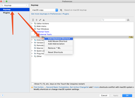 打开 Preferences or Settings -> Keymap -> External Tools -> External Tools - Black