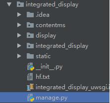 django是MTV模式,即template(页面展现),modle(数据库表对象),view(业务逻辑处理),在开发中发现,随着项目功能的增多,把所有的功能模块放在一个app肯定不切实际,也不符合网站开发的原则。下图是我在做的一个数据可视化分析平台,项目名:integrated_display 两个app:分别是 contentms 和 display,建立app的命名很简单,Python