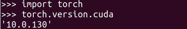 >>>import torch >>>torch.version.cuda #输出一个 cuda 版本
