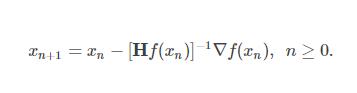 牛顿法只迭代了约5次就找到了函数的最小值点。