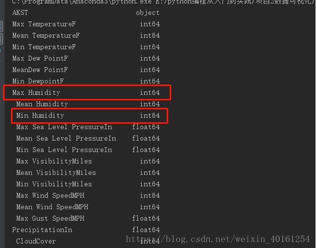 import pandas as pd from matplotlib import pyplot as plt from datetime import datetime filename='sitka_weather_2014.csv' df=pd.read_csv(filename) print(df.dtypes)