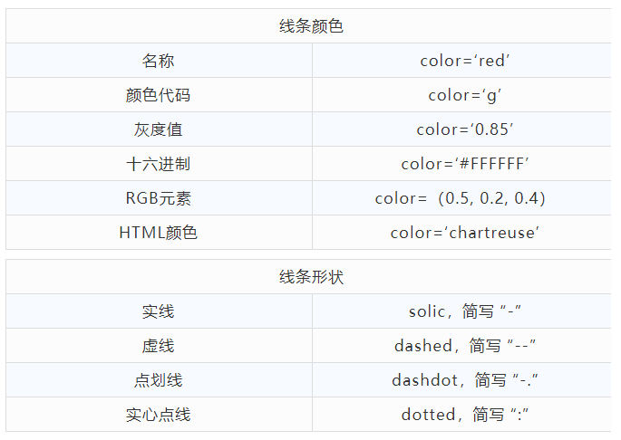 # 调整坐标轴上下限 plt.xlim([xmin, xmax]) plt.ylim([ymin, ymax]) plt.axis([xmin, xmax, ymin, ymax]) # 参数:tight:把图形设置成紧凑模式,不留多余的部分 # equal:图形显示分辨率为1:1