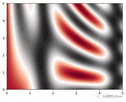 plt.contourf(x, y, z, 50, cmap='RdGy') # 改为contourf,自动填充颜色,则变为连续的
