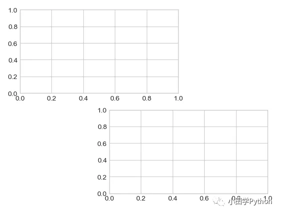 plt.subplot(2,1,1) # 子图,(2,1,1)代表,创建2*1的画布,并且定位于画布1 ;等效于plt.subplot(211),即去掉逗号 # subplots 可以同时创建多个子图 figure,ax = plt.subplots(2, 3) # 这是一个灵活创建子图的方法,可以创建任意组合的图形,不必一一对齐,以下为示例: grid = plt.GridSpec(2, 3, wspace=0.3, hspace=0.2) plt.subplot(grid[,:2]) plt.subplot(grid[1,1:3])