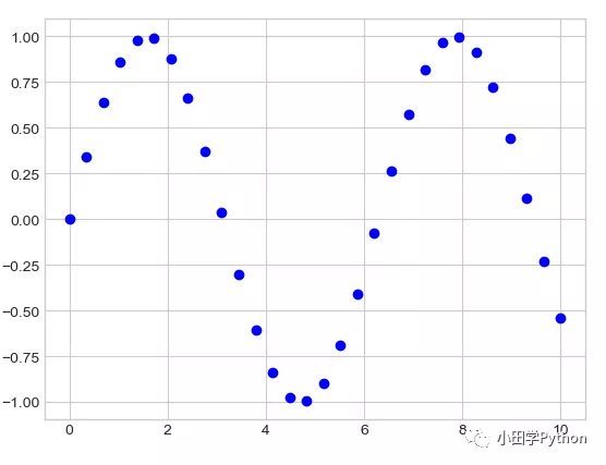 画散点图还可以使用scatter函数来画,他有很多更细节的描述,用法与plot类似,对于数据量较大的可视化时,plot的效率更高一些。