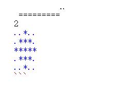 补充知识:Python打印高度为2 * n + 1,宽度为 2 * n + 1的菱形,输出一个由'*'组成的菱形,空白的地方用'.'表示。