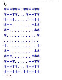 每次输入一个整型n(1 <= n <= 30)。输出一个由'.‘组成的菱形,空白的地方用'*'表示。